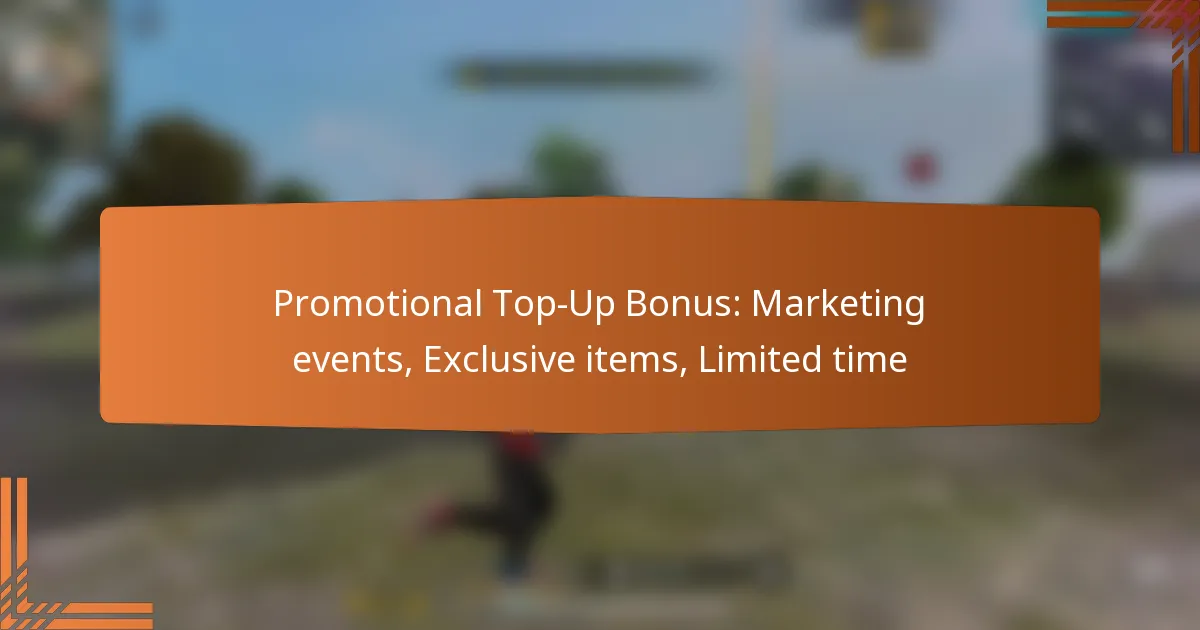 Promotional Top-Up Bonus: Marketing events, Exclusive items, Limited time